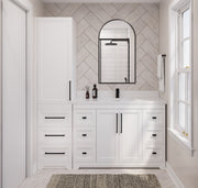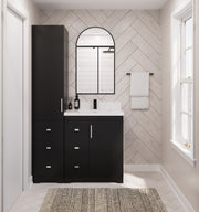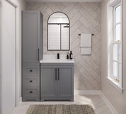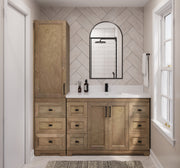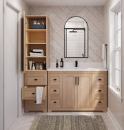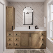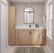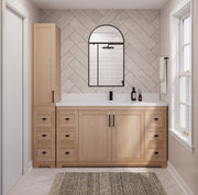 Complete your bathroom with a Westmount Linen Tower, crafted from solid wood and proudly made in Canada. Designed to match the elegance of the Westmount vanities, these towers provide ample storage with adjustable shelves and soft-close doors. available in a stunning Natural Maple, Desert Oak, Olive Stain, painted Grey, White, or Black—each showcasing the beauty of the Westmount. Keep in mind all stains are on Maple. As this tower is made from solid wood, the stain can differ in colour by 5% darker or lighter. The side panels and fronts become MDF when you select a painted option. Available in 19 or 22 inch depth.