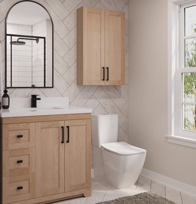 Crafted in Canada with quality and care, the Westmount storage cabinet comes in four elegant finishes: Natural Maple, Desert Oak, Olive Stain, painted Grey, White, or Black—perfectly coordinated to match your existing Westmount vanity or stand alone as a stylish storage solution. Keep in mind - all stains are a stain on Maple. As this cabinet is made from solid wood, the stain can differ in colour by 5% darker or lighter. The side panels and door fronts become MDF when you select a painted option.