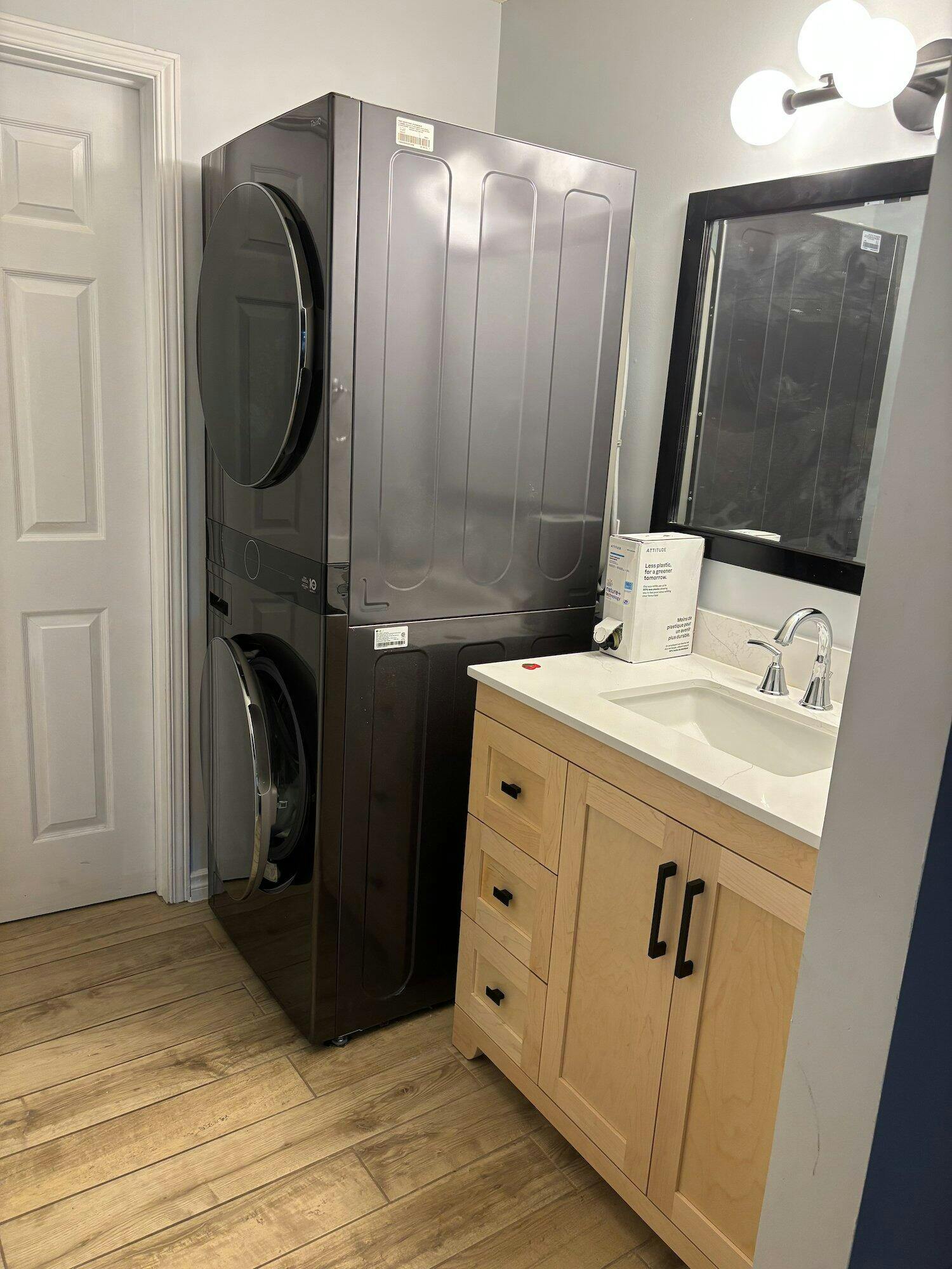 - Countertop: Premium 2cm quartz, wrapped separately, sink included (pre-mounted)